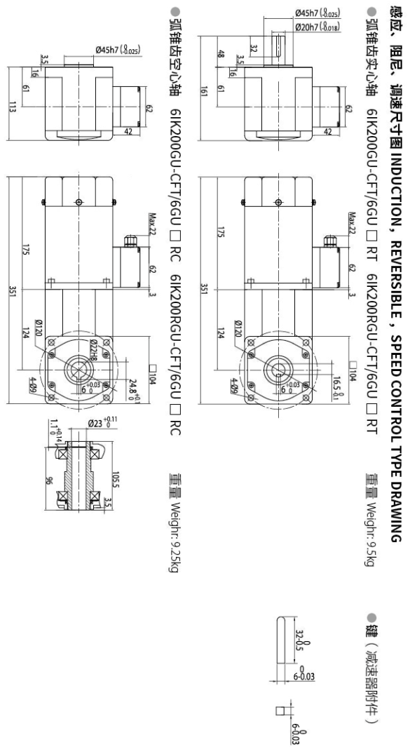 力矩電機直角中空減速電機6TK40GU-CFPT/6GU60RC-蘇州邁傳直角減速電機可配感應電機、力矩電機、剎車電機、直流電機、調速電機等,200W直角中空減速電機尺寸圖如下。