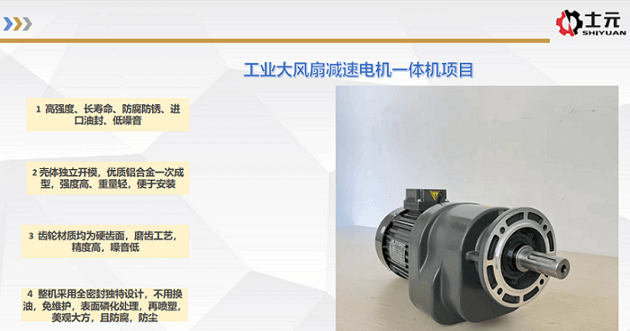 3 士元(三相異步)工業(yè)風(fēng)扇電機(jī): 齒輪材質(zhì)均為硬齒面,磨齒工藝,精度高,噪音低