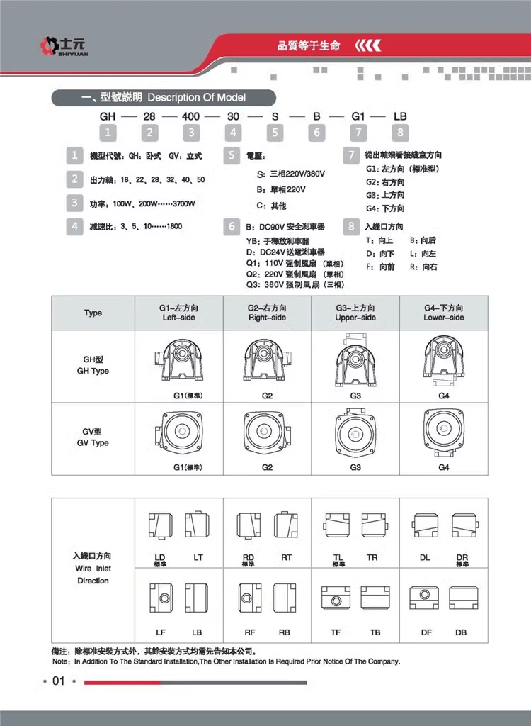 - 士元S系列伺服齒輪減速馬達(dá)型號(hào)說明